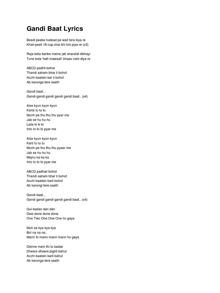 Gandi Baat Lyrics / Bhidti jo nukkad pe weight tera kiya re.