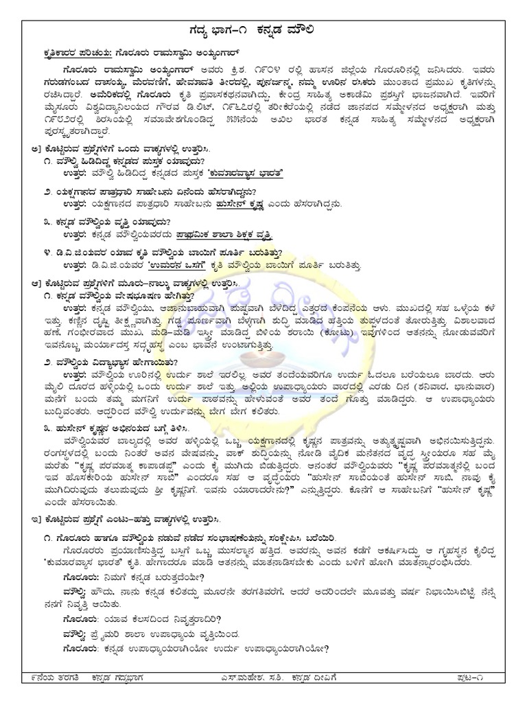 Kannada Notes 9Th / Class 9 english notes according to fbise syllabus.